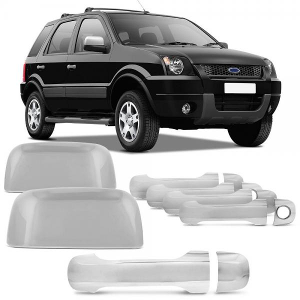 Kit Aplique de Maçaneta Cromado Ecosport 05 06 07 4 Portas + Aplique Maçaneta Traseira Cromada Tampa Traseira + Capa de Retrovisor Cromado